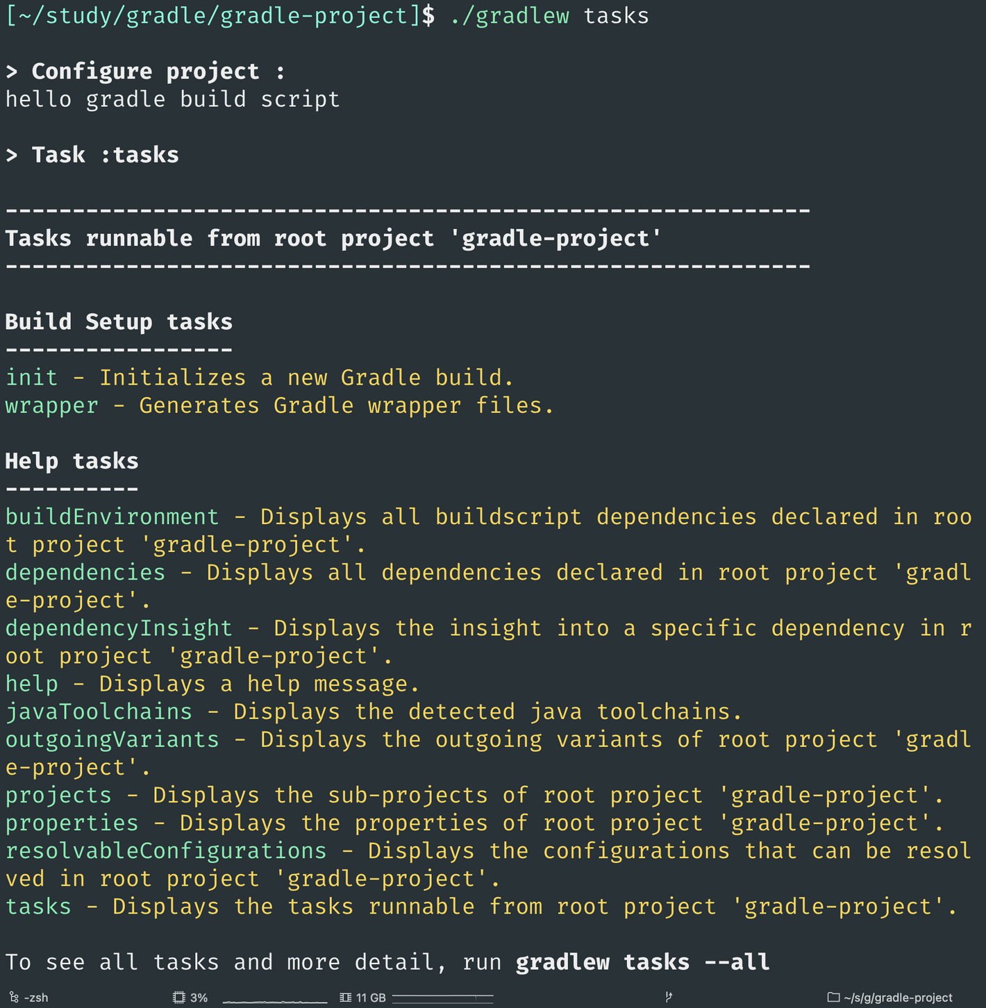./gradlew help # mac, linux : 본 포스팅 기준 테스크 실행하는 커맨드