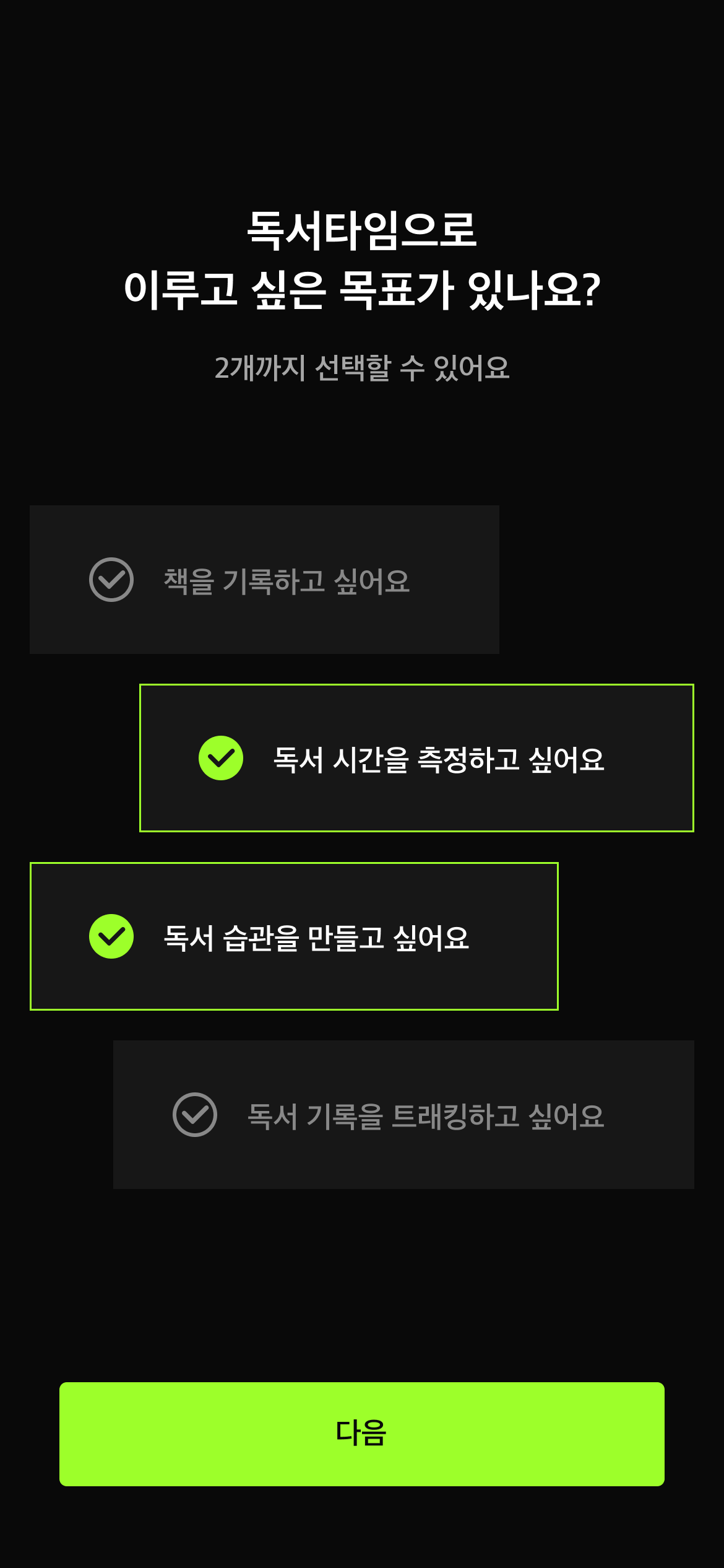 독서타임에 온보딩 기능을 추가하는 중이다. 온보딩은 앱을 사용하면서 달성하고자 하는 게 무엇인지 입력받는 것부터 시작한다.