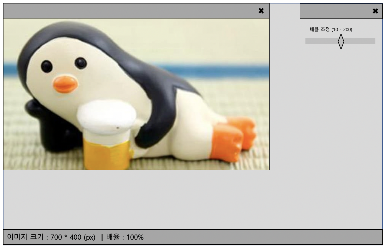 1. 이미지를 마우스 휠로 드래그해서 배율을 맞춰놨지만 제어부의 슬라이더와 상태부의 값은 그대로 예전 배율을 보여준다.