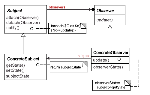 - 내부적으로 Observer 리스트를 가지고 있다. (잡지사가 구독자의 정보를 가지고 있는 것이다.)