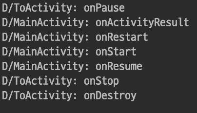해당 ToActivity 에서 MainActivity 로 돌아 갈 때 (Backpressed)
