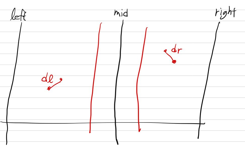 1번 케이스와 2번 케이스의 최소 값을 d 라고 할 때, 우리는 3번 케이스에서 d 이하의 값을 찾고 있는 중이다.